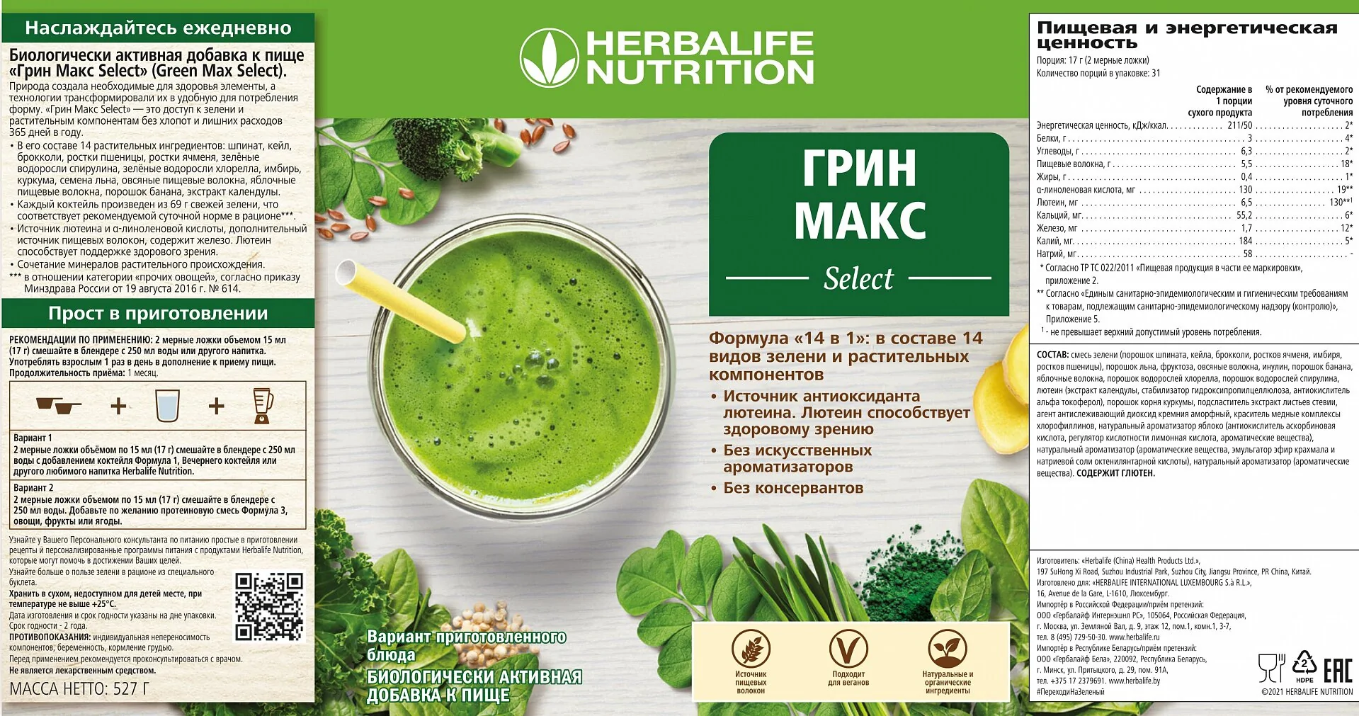 Природа создала необходимые для здоровья компоненты, а технологии трансформировали их в удобную для потребления форму. Грин Макс Select* – это доступ к зелени и растительным компонентам без хлопот и лишних расходов 365 дней в году.
